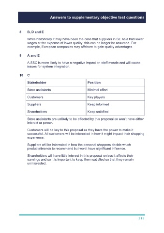 Answers to supplementary objective test questions