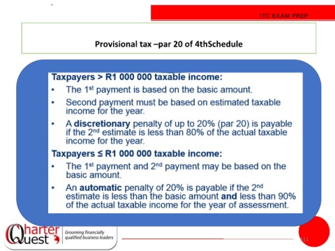 ITC EXAM PREP Provisional tax –par 20 of 4thSchedule 111