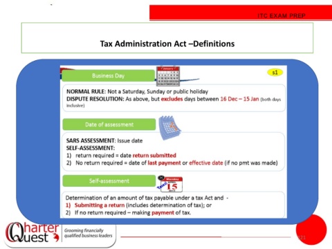 ITC EXAM PREP Tax Administration Act –Definitions 121