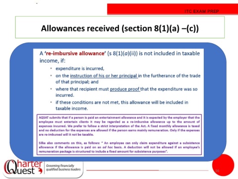 ITC EXAM PREP Allowances received (section 8(1)(a) –(c)) 16