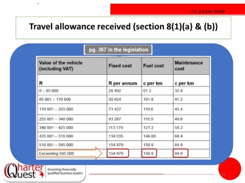 ITC EXAM PREP Travel allowance received (section 8(1)(a) & (b)) 21