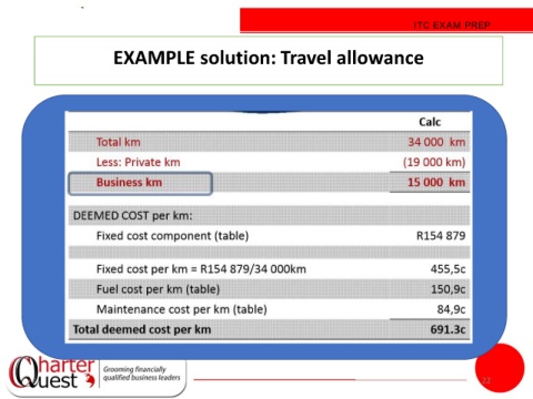 ITC EXAM PREP EXAMPLE solution: Travel allowance 22