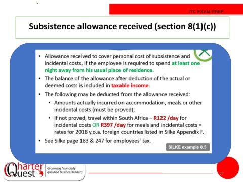 ITC EXAM PREP Subsistence allowance received (section 8(1)(c)) 27