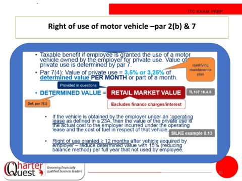 ITC EXAM PREP Right of use of motor vehicle –par 2(b) & 7 31