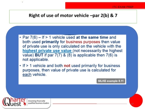 ITC EXAM PREP Right of use of motor vehicle –par 2(b) & 7 37