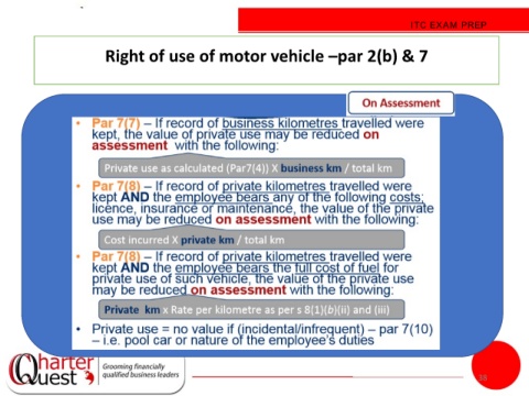 ITC EXAM PREP Right of use of motor vehicle –par 2(b) & 7 38