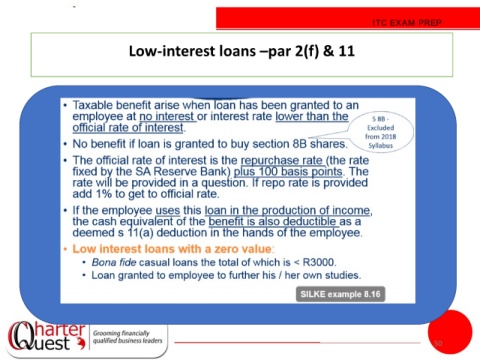 ITC EXAM PREP Low-interest loans –par 2(f) & 11 50