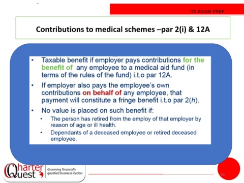 ITC EXAM PREP Contributions to medical schemes –par 2(i) & 12A 53