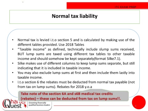 • I.t.o section 6 the rebates must be deducted from normal tax payable (not
