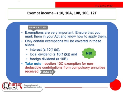ITC EXAM PREP Exempt income –s 10, 10A, 10B, 10C, 12T 64