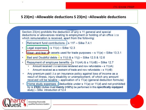 ITC EXAM PREP S 23(m) –Allowable deductions S 23(m) –Allowable deductions 74