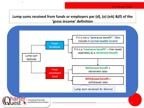 ITC EXAM PREP Lump sums received from funds or employers par (d), (e) (eA) &(f) of the ‘gross income’ definition 89