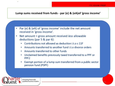 ITC EXAM PREP Lump sums received from funds - par (e) & (eA)of ‘gross income’ 93