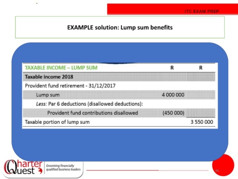 ITC EXAM PREP EXAMPLE solution: Lump sum benefits 96