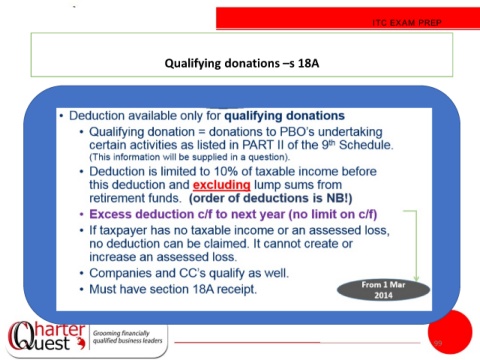 ITC EXAM PREP Qualifying donations –s 18A 99