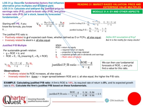 earnings ratio (P/E), price-to-book ratio (P/B), and price- MODULE 31.4: EV AND OTHER ASPECTS