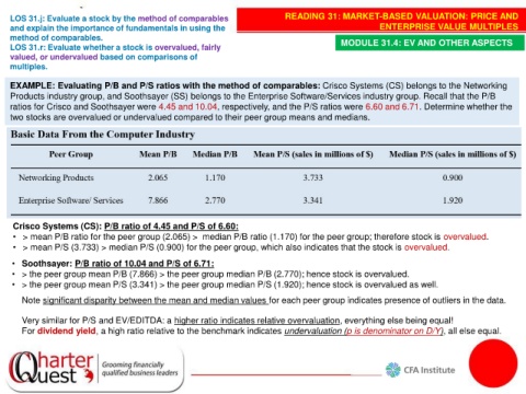 LOS 31.j: Evaluate a stock by the method of comparables READING 31: MARKET-BASED VALUATION: PRICE AND