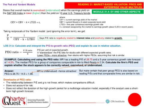 The Fed and Yardeni Models READING 31: MARKET-BASED VALUATION: PRICE AND