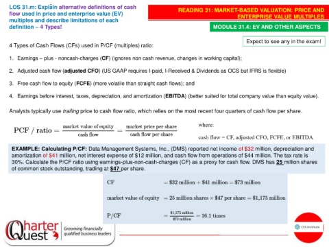 LOS 31.m: Explain alternative definitions of cash READING 31: MARKET-BASED VALUATION: PRICE AND
