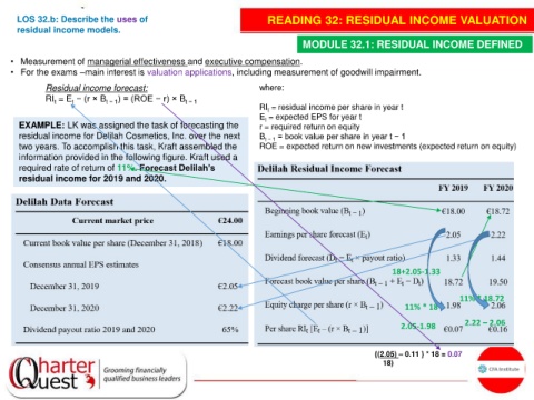 LOS 32.b: Describe the uses of READING 32: RESIDUAL INCOME VALUATION