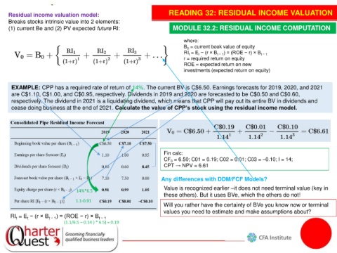 Residual income valuation model: READING 32: RESIDUAL INCOME VALUATION