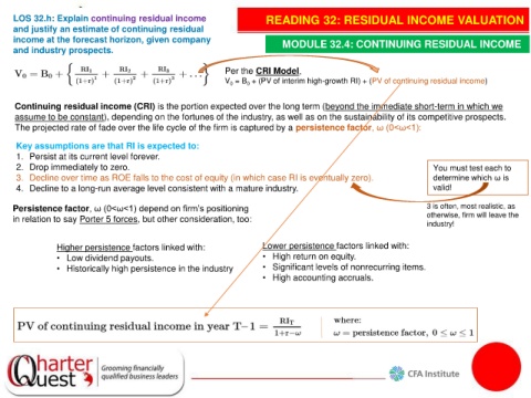 LOS 32.h: Explain continuing residual income READING 32: RESIDUAL INCOME VALUATION