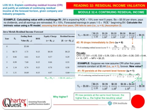 LOS 32.h: Explain continuing residual income (CRI) READING 32: RESIDUAL INCOME VALUATION