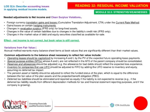 LOS 32.k: Describe accounting issues READING 32: RESIDUAL INCOME VALUATION