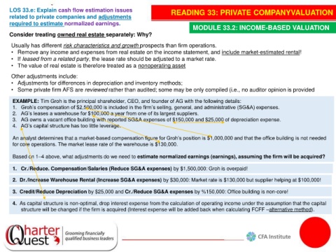 LOS 33.e: Explain cash flow estimation issues READING 33: PRIVATE COMPANYVALUATION