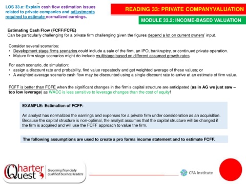 LOS 33.e: Explain cash flow estimation issues READING 33: PRIVATE COMPANYVALUATION