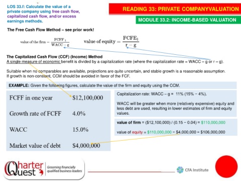 LOS 33.f: Calculate the value of a READING 33: PRIVATE COMPANYVALUATION