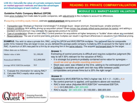 on market approach methods and describe advantages READING 33: PRIVATE COMPANYVALUATION