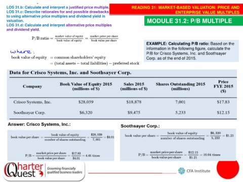 LOS 31.b: Calculate and interpret a justified price multiple. READING 31: MARKET-BASED VALUATION: PRICE AND