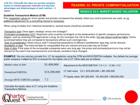 based on market approach methods and describe READING 33: PRIVATE COMPANYVALUATION