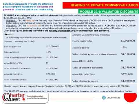 LOS 33.k: Explain and evaluate the effects on READING 33: PRIVATE COMPANYVALUATION