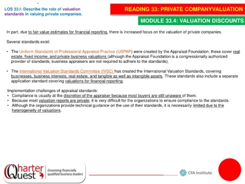 • Because most valuation reports are private, it is very difficult for the organizations to ensure compliance to the standards.