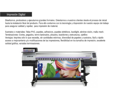 Sustratos o materiales: Telas PVC, papeles, adhesivos, papeles sintéticos, backlight, window visión, malla mesh.