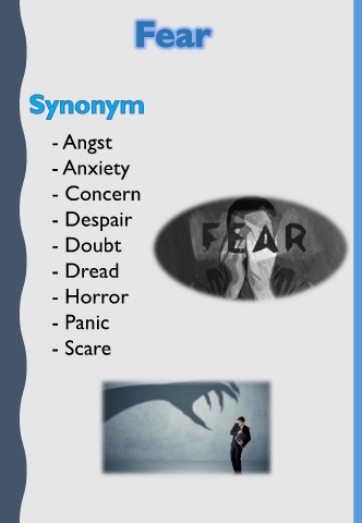 - Angst - Anxiety - Concern - Despair - Doubt - Dread - Horror - Panic - Scare
