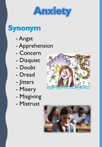 - Angst - Apprehension - Concern - Disquiet - Doubt - Dread - Jitters - Misery - Misgiving - Mistrust