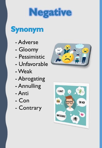 - Adverse - Gloomy - Pessimistic - Unfavorable - Weak - Abrogating - Annulling - Anti - Con - Contrary