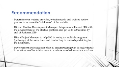 • Hire a Project Manager to help SIG in teeing up multiple programs