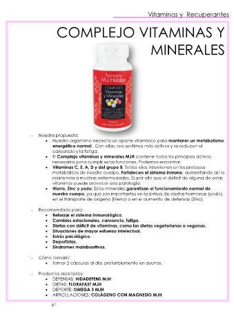 El Complejo vitaminas y minerales MJH contiene todos los principios activos