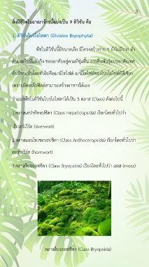 จ าแนกพืชในดิวิชันไบรโอไฟตาได้เป็น 3 คลาส (Class) ดังต่อไปนี้