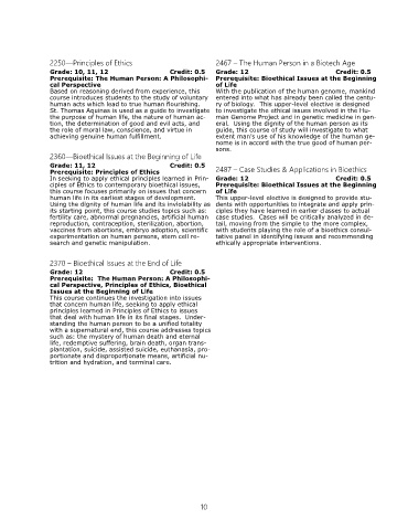 Prerequisite: The Human Person: A Philosophi- Prerequisite: Bioethical Issues at the Beginning