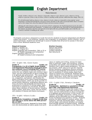 study classic literature of diverse genres, including lish I Adv. and Department Placement