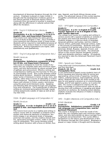 course of study as English II Adv., but it includes a Students engage in a rigorous study of language,