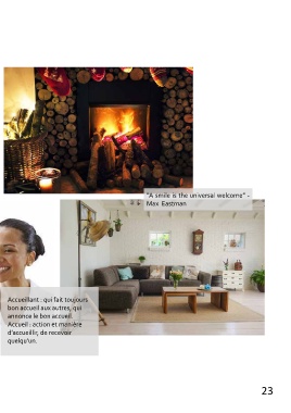 “A smile is the universal welcome” - Max Eastman “A smile is the universal welcome” - Max Eastman Accueillant : qui fait toujours bon accueil aux autres, qui annonce le bon accueil. Accueil : action et manière d’accueillir, de recevoir quelqu’un. 23