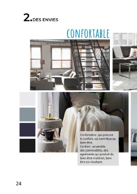 2.DES ENVIES confortable Confortable : qui procure le confort, qui contribue au bien-être Confort : ensemble des commodités, des agréments qui produit du bien-être matériel, bien- être en résultant. 24