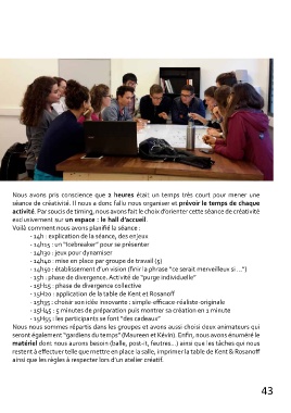 séance de créativité. Il nous a donc fallu nous organiser et prévoir le temps de chaque