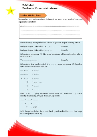 Jadi, didapatkan bahwa harga satu buah pensil adalah Rp........... dan harga